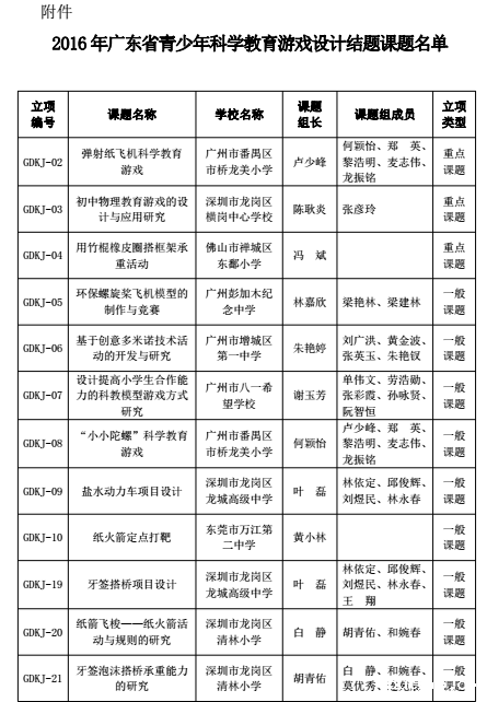 附件:2016年广东省青少年科学教育游戏设计研究结题名单.doc