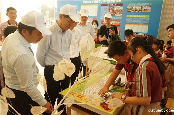 东莞市常平镇板石小学对活动十分重视,精心安排活动每个环节,启动仪式后,还组织了各项科学体验活动,展示同学们的奇思妙想,领导嘉宾对同学们的作品进行了现场点评。