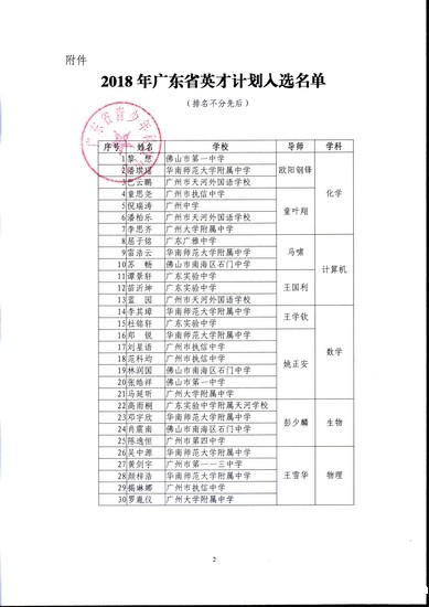 附件:2018年广东省英才计划入选名单