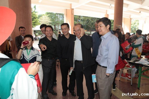 省青少年科技教育协会理事长吴颖民(右2)等领导参观学生作品
